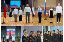 Как и всегда по понедельникам, в школьных отделениях провели церемонию вноса и установки Государственного флага Российской Федерации.